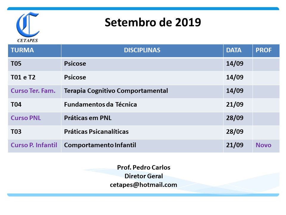 CRONOGRAMA SETEMBRO/19 Compartilhe isso: Compartilhar no X(abre em nova janela) 18+ Compartilhar no Facebook(abre em nova janela) Facebook Curtir Carregando...