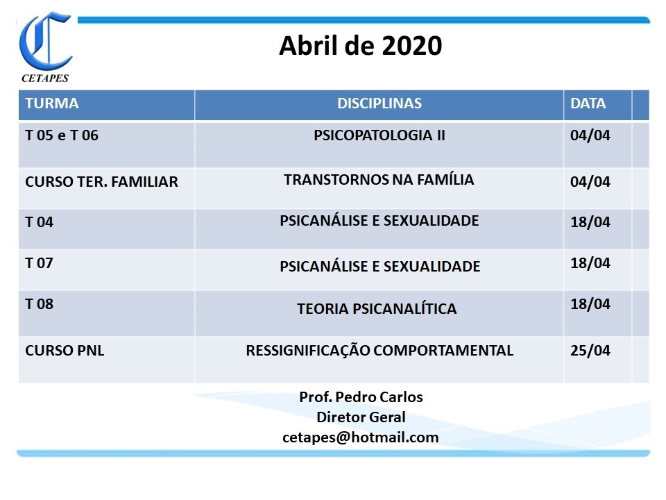 CRONOGRAMA ABRIL 20 Compartilhe isso: Compartilhar no X(abre em nova janela) 18+ Compartilhar no Facebook(abre em nova janela) Facebook Curtir Carregando...