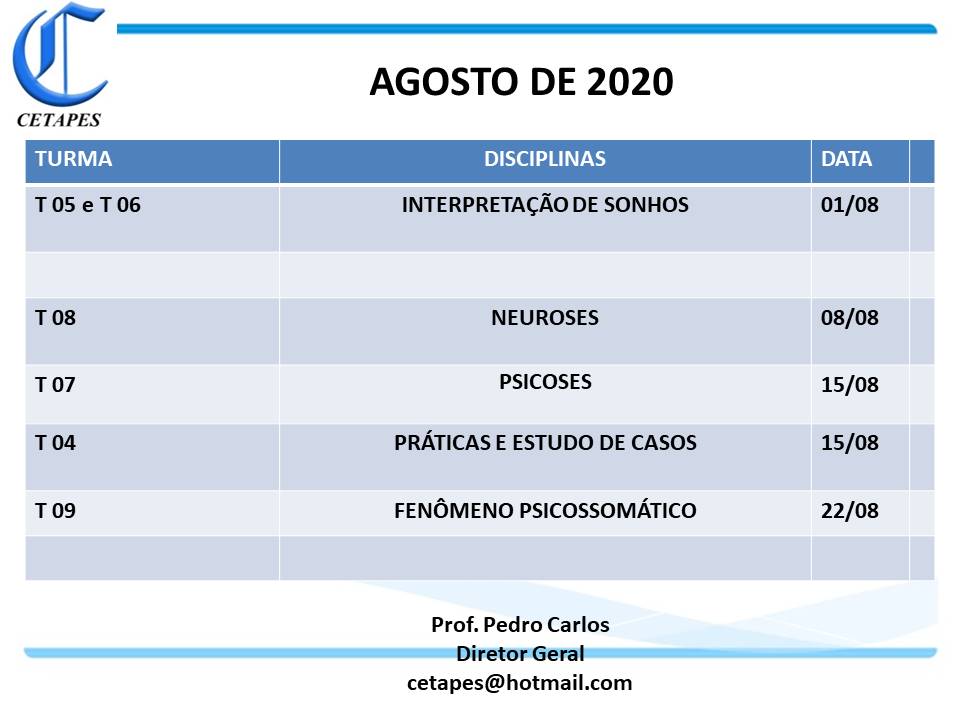 CRONOGRAMA AGOSTO 20 Compartilhe isso: Compartilhar no X(abre em nova janela) 18+ Compartilhar no Facebook(abre em nova janela) Facebook Curtir Carregando...