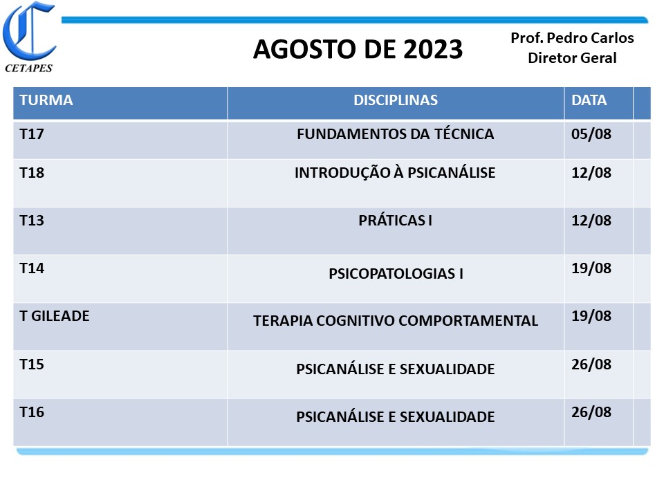 CRONOGRAMA AGOSTO 23 Compartilhe isso: Compartilhar no X(abre em nova janela) 18+ Compartilhar no Facebook(abre em nova janela) Facebook Curtir Carregando...