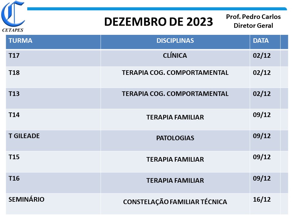CRONOGRAMA DEZEMBRO 23 Compartilhe isso: Compartilhar no X(abre em nova janela) 18+ Compartilhar no Facebook(abre em nova janela) Facebook Curtir Carregando...