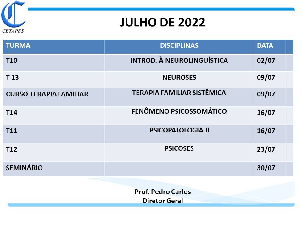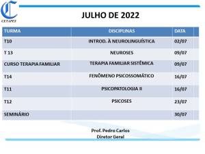 CRONOGRAMA JULHO 22 Compartilhe isso: Compartilhar no X(abre em nova janela) 18+ Compartilhar no Facebook(abre em nova janela) Facebook Curtir Carregando...