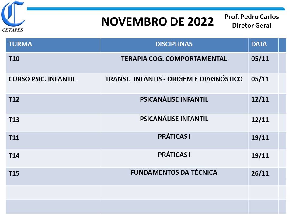 CRONOGRAMA NOVEMBRO 22 Compartilhe isso: Compartilhar no X(abre em nova janela) 18+ Compartilhar no Facebook(abre em nova janela) Facebook Curtir Carregando...