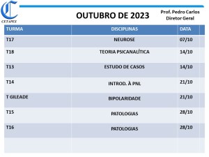 CRONOGRAMA OUTUBRO 23 Compartilhe isso: Compartilhar no X(abre em nova janela) 18+ Compartilhar no Facebook(abre em nova janela) Facebook Curtir Carregando...